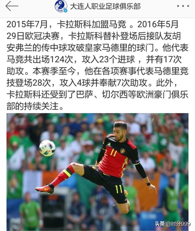 比利时主帅马丁内斯曾主动来中国看望过卡拉斯科,说明他还是很看重卡拉斯科的。而俄罗斯世界杯上比利时7场比赛卡拉斯科有4次出场3次首发,场均打了60分钟,也说明卡拉斯科在国家队拥有不错的地位。在中超期间,卡拉斯科从没有落选国家队,今年26岁的卡拉斯科无疑是比利时未来国家队希望和重要一员,至少也是国家队重点培养对象。即便在卡拉斯科有了离开大连的念头之后,马丁内斯还表示可以到中国来看望考察卡拉斯科。