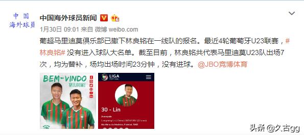 据知名博主“中国海外球员新闻” 爆料,现效力葡超马里迪莫俱乐部的中国球员林方铭已被撤下一线队的报名,而在葡萄牙U23联赛,林良铭最近4轮都没有进入大名单。截止目前,林良铭共代表马里迪莫U23队出场7次,均为替补,场均出场23分钟,没有取得进球。走投无路的林良铭,据说已经参加正在西班牙集训的大连人队的试训,不排除双方你情我愿情况下,与现效力大连人队的单欢欢一起回国踢中超。云云。