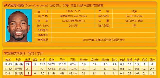 我们知道体育基本都是吃青春饭的,蹉跎几年之后,意志被消磨、激情和热情消退,那么逐渐地琼斯都会被淹没在人海中——别说NBA观众不认识他,CBA观众也不会有多少人知道多米尼克.琼斯是谁的!
