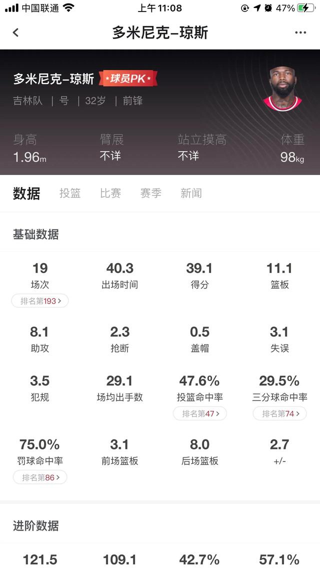 琼斯的决定可以说是很正确,看一下琼斯本赛季的数据你就知道我为什么这么说。
